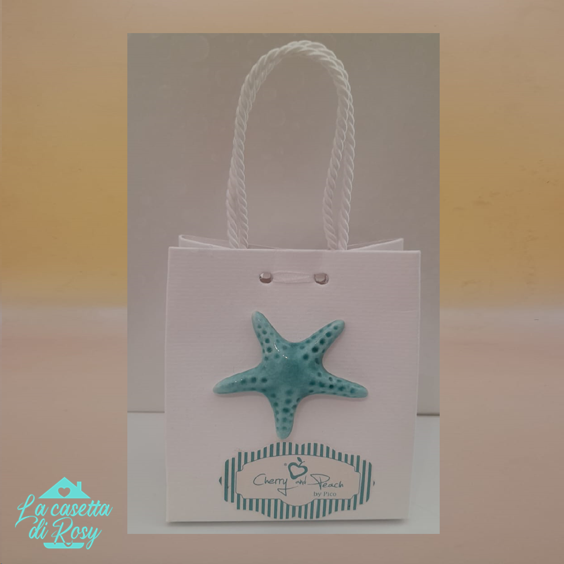 Bag con applicazione Stella Marina in ceramica dipinta a mano