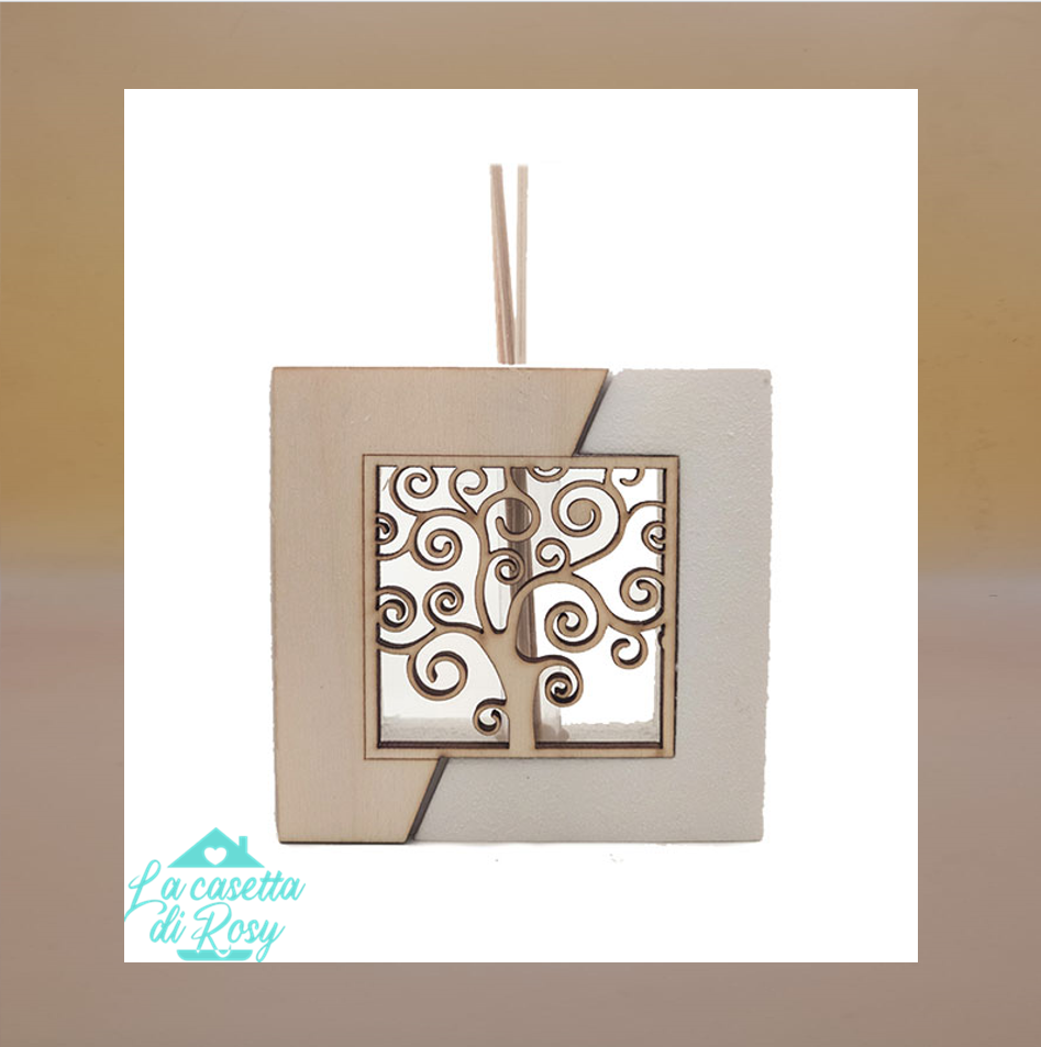 Profumatore in resina e vetro Albero della vita, con profumino incluso. cm.12 x cm.12 Confezionato con n.5 confetti mandorla bianchi.