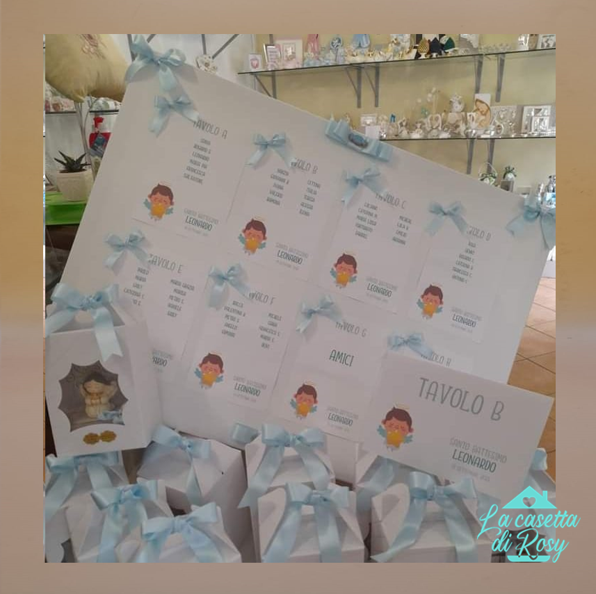 Tableau de marriage per Battesimo. Tema angioletti. Creato su pannello di tela. Dimensioni 70×90. Le dimensioni potranno variare in base al numero di tavoli. Decorato con […]